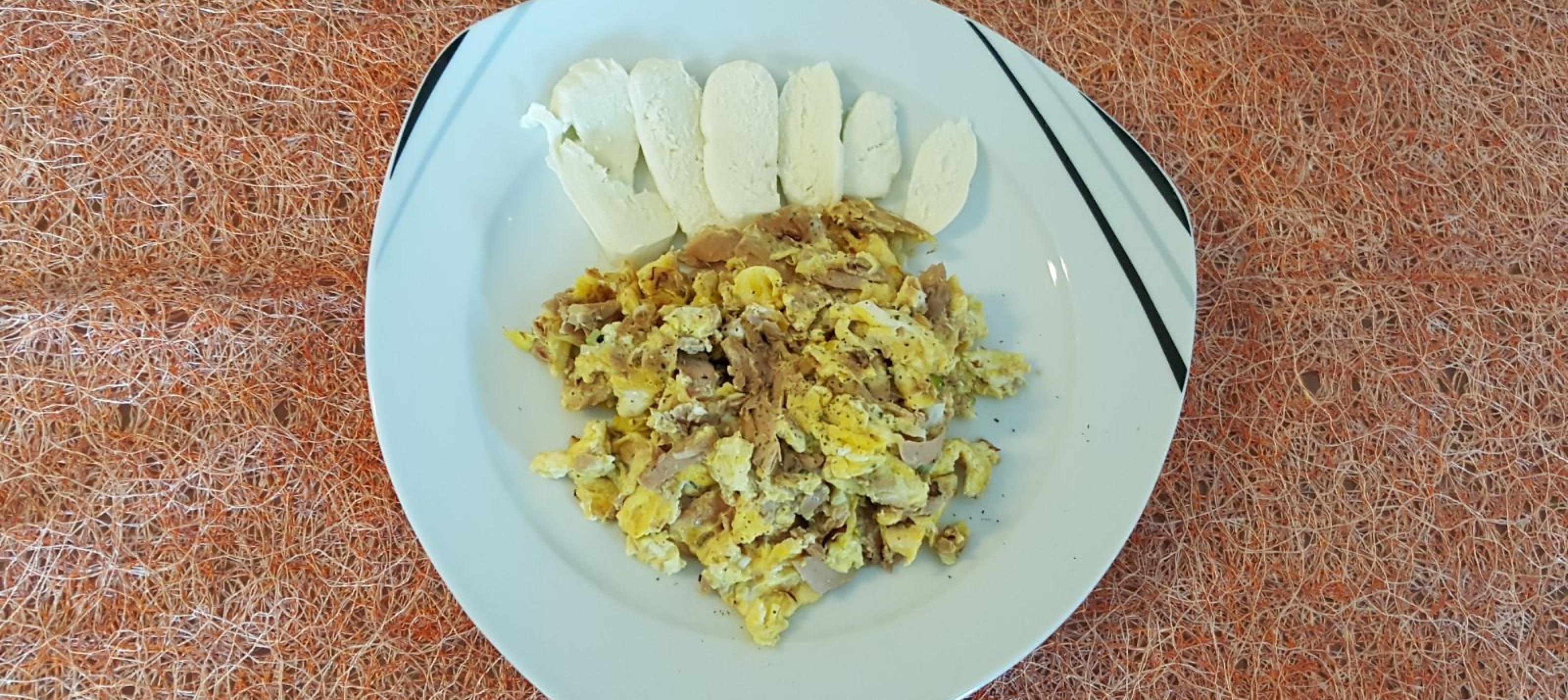 Zubereitung: - Kokosöl in der Pfanne erhitzen und klein geschnittene Zwiebelstücke anschwitzen. - Eier in einer Schüssel versprudeln und mit Salz, Pfeffer und Kräuter vermischen. - Den Thunfisch zu den Zwiebeln in die Pfanne geben. Dann die Eier darüberschütten und warten bis die Masse durch ist. - Den Mozzarella aufschneiden und mit der Eierspeiß anrichten.